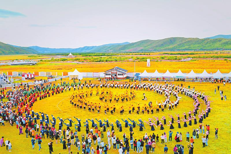 红原雅克音乐季万人锅庄引各族游客共舞。阿坝州民宗委供图