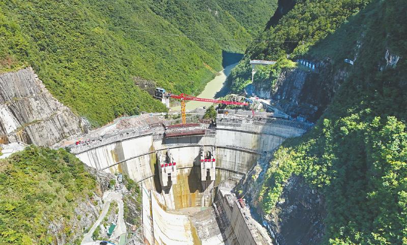 土溪口水库工程正在冲刺年底大坝碾压混凝土浇筑至坝顶高程目标。达州观察 张海波 摄