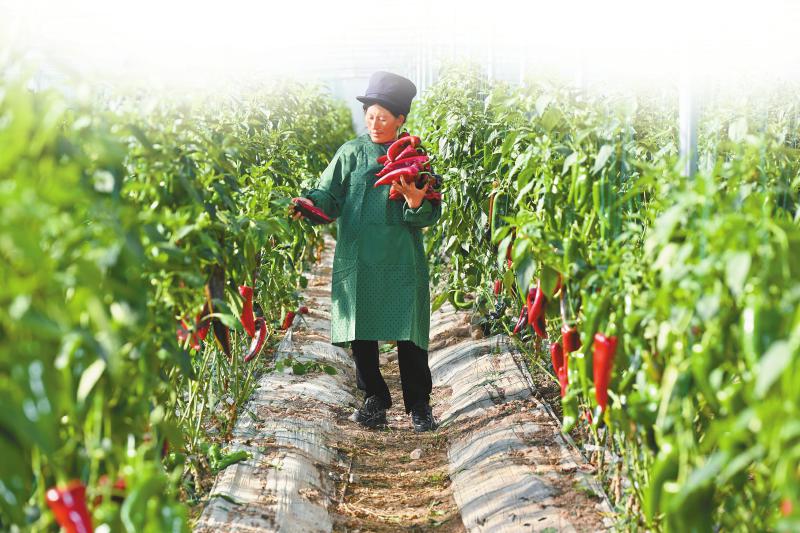 近日,凉山州布拖县高山越夏设施蔬菜产业园大棚内,村民采摘着红辣椒,幸福的喜悦挂在脸上。四川日报全媒体记者肖雨杨摄