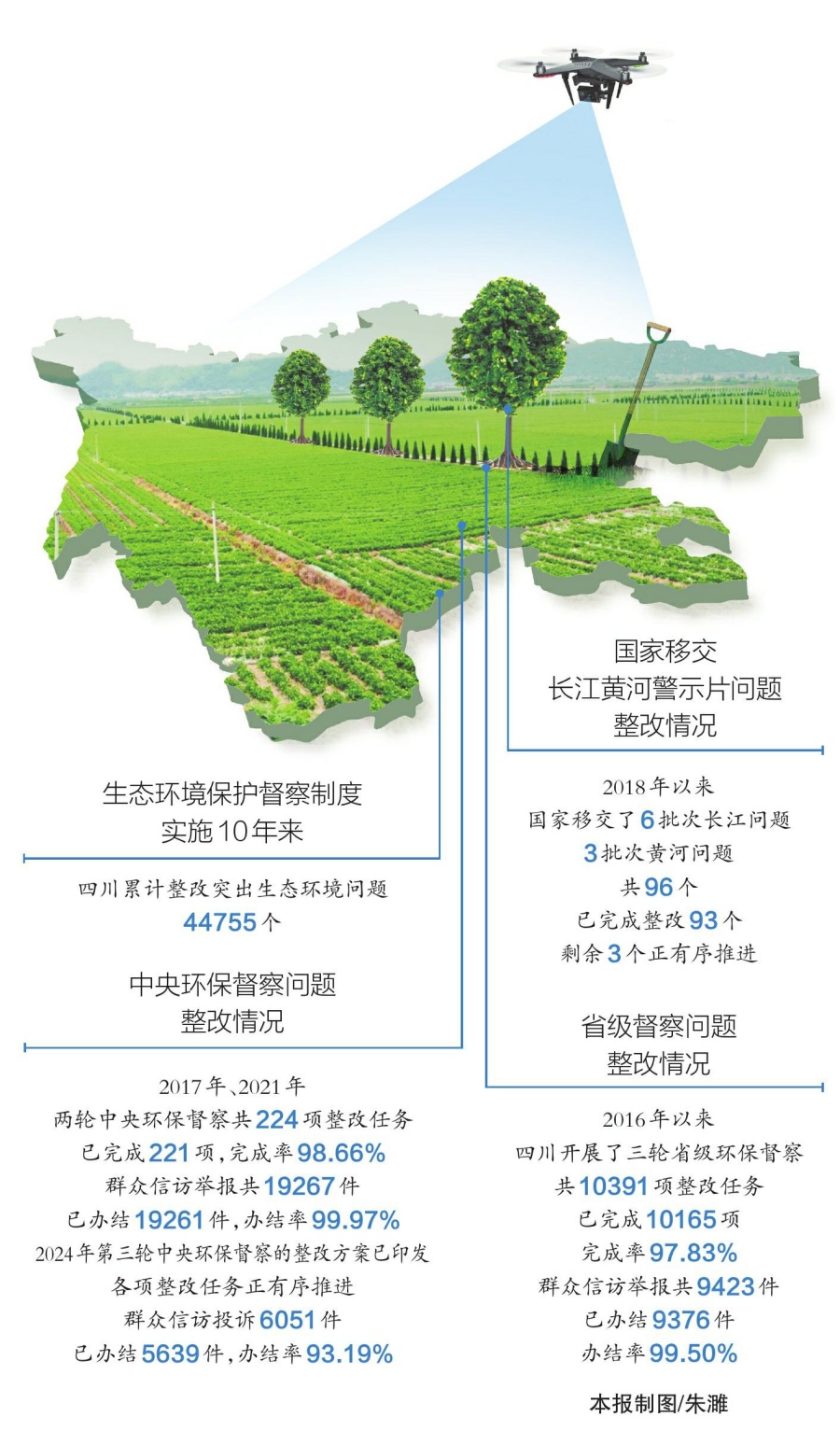 四川以中央和省级生态环境保护督察为抓手,持续压实整改责任。2017年以来,四川历经三轮中央生态环境保护督察,并同步实现三轮省级督察对21个市(州)的全覆盖。