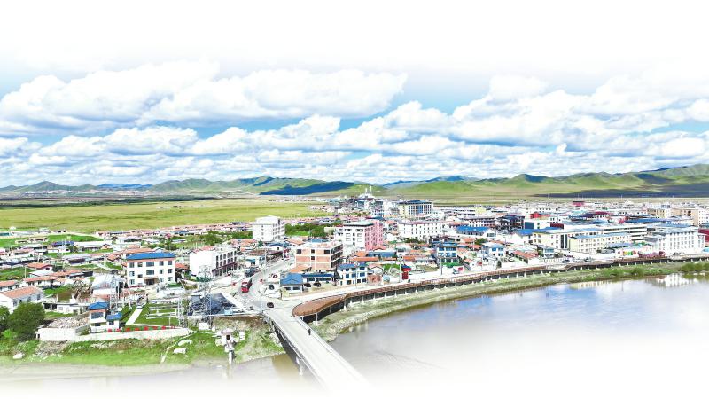 近日,远眺风貌改造后焕然一新的唐克镇。若尔盖县委宣传部供图
