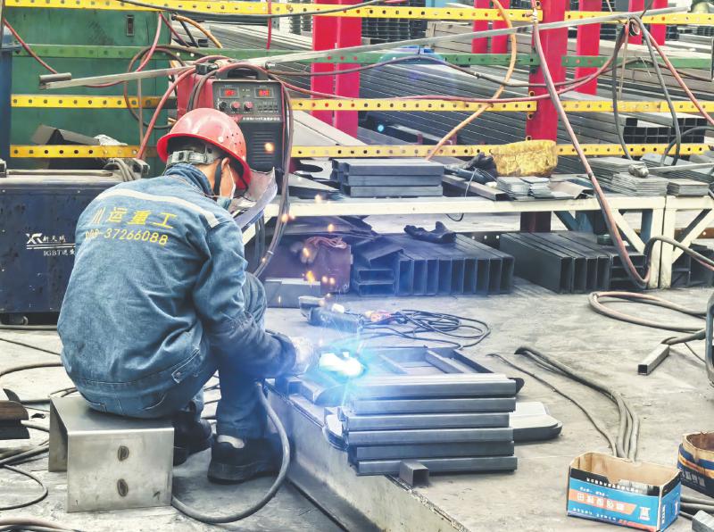 近日,川运重工工人进行焊接作业。 丹棱县委宣传部供图