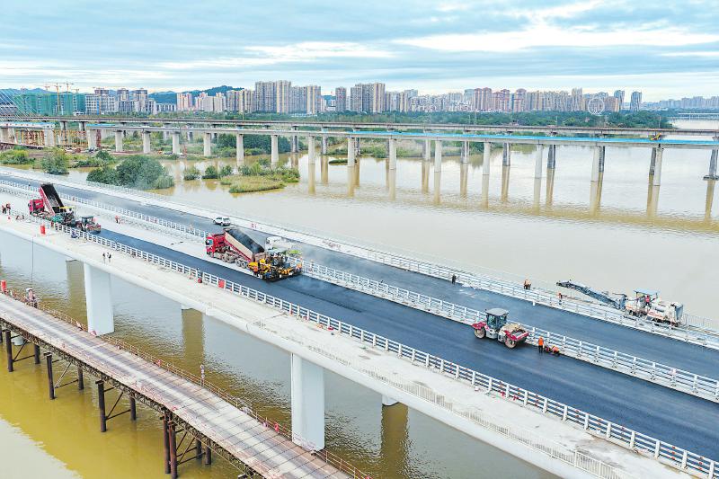 近日,遂宁境内首座斜拉大桥——涪江六桥进入路面施工阶段。该桥建成后将串联遂宁经开区高铁新城、老城区与河东新区,成为遂宁城市新地标。 刘昌松 摄(C视觉)