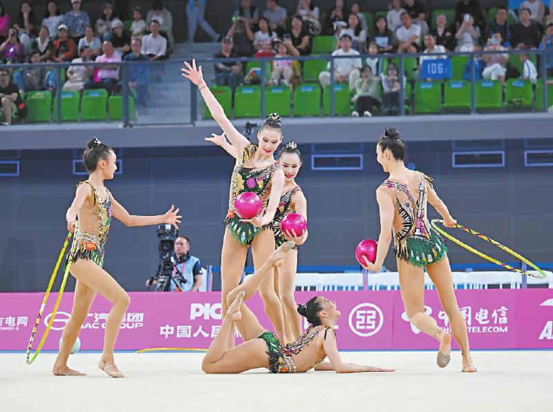 四川艺术体操队在集体全能决赛中。