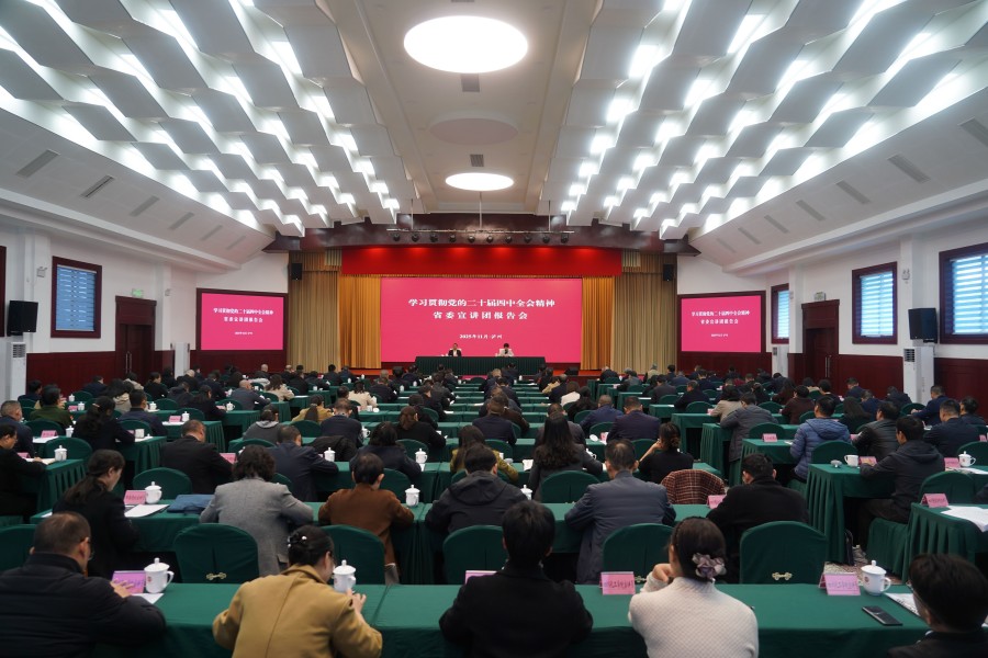 11月21日上午,学习贯彻党的二十届四中全会精神省委宣讲团报告会在泸州举行。省委宣讲团第六分团团长、省财政厅党组书记、厅长黎家远作宣讲报告。泸州市各级各部门主要负责同志,市委宣讲团成员以及基层职工代表等200余人参加报告会。