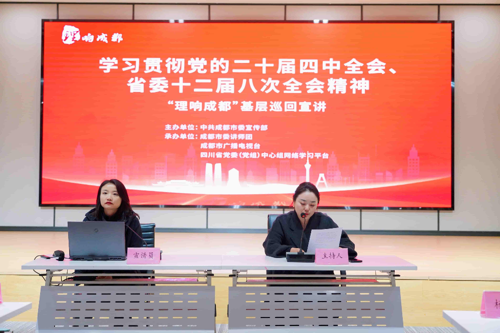 现场,成都市委党校的陈雁翎、彭聪以及成都市委讲师团的余新月、成都银行的杨彦婷4位讲师,分别围绕“深入学习党的二十届四中全会精神:从‘十四五’到‘十五五’,奋力推进中国式现代化”“推动金融高质量发展 加快建设金融强国”“从三张‘小纸片’读懂党的二十届四中全会的民生温度与发展力量”“科技自强 未来已来”四个主题进行深入浅出地讲解。