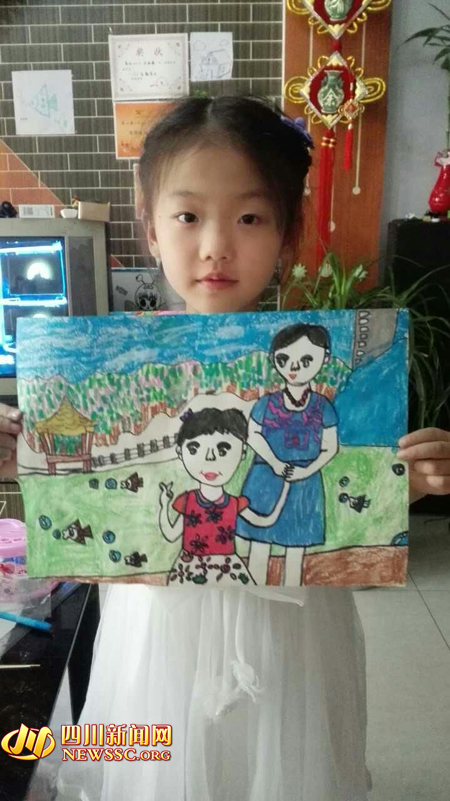 采访中,肖心仪告诉记者,去过阆中构溪河后,看见当地的景色十分美丽,后在爸爸妈妈的帮助下,便给画作起名为《美丽的阆中构溪河》。