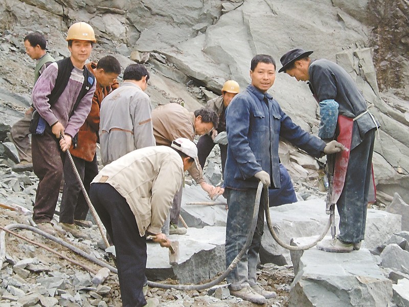 达川区安仁乡梨山包村村道建设采石现场。