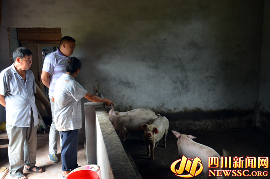 邓余良向村民了解新建猪圈养殖情况