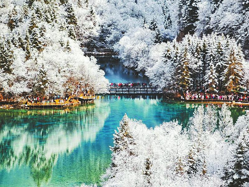 九寨沟冬日胜景。九寨沟景区供图