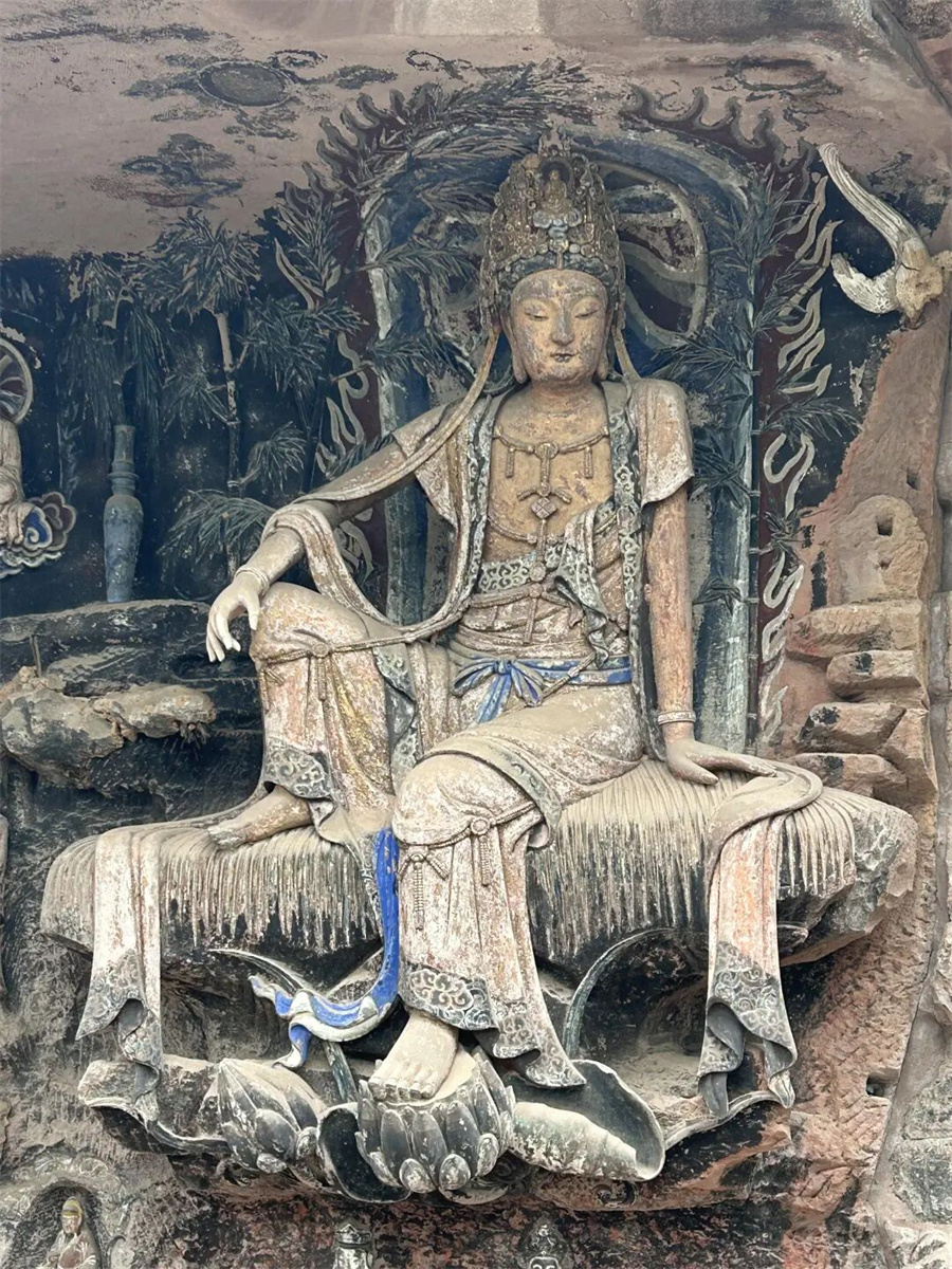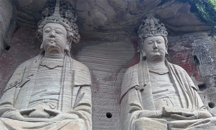 这里的文物数量众多,全县境内现存唐宋摩崖石刻造像10万余尊,石窟摩崖经文近40万字,石窟类全国重点文物保护单位8个;这些造像技艺绝伦,盛唐之丰腴、两宋之精细、多元融合之美集中呈现;这些造像精品迭出,“最美观音造像”紫竹观音、世界最长唐代左侧卧佛无不令人啧啧称叹。