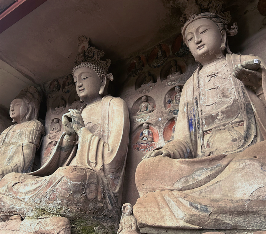 2025年12月4日在四川省资阳市安岳县塔坡拍摄的华严三圣像。新华每日电讯记者赵怡宁摄