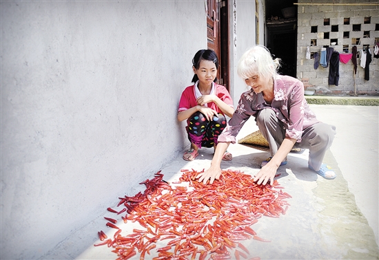 “李书记,快来坐,你看我种的辣椒,看起来比别人家的都好。”见到“第一书记”李川来访,夏忠南的老伴刘秀华从里屋搬出条凳,热情招呼村干部就座,在她家的屋檐下,一小片红辣椒被均匀摊开,阳光下显得很耀眼。