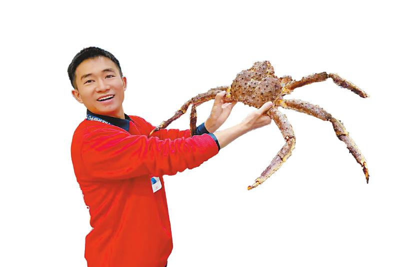 这条“线上配送线”的另一端,门店水产区的帝王蟹水池边,水产档主管张魏涵每隔一段时间,就要仔细查看水池水温、监测池水盐分。“水温必须保持在3—5摄氏度,同时要维持适宜盐度,晚上还要给帝王蟹投喂虾类,这样才能确保帝王蟹始终鲜活,送到消费者手中时口感最佳。”