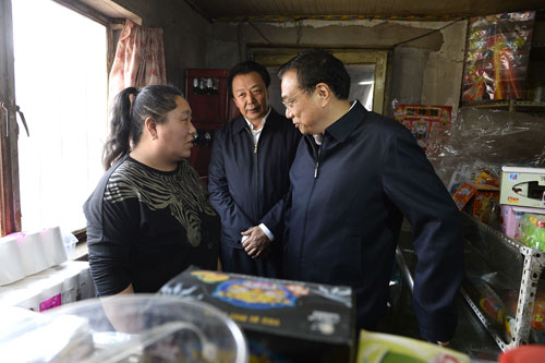 ——2014年3月27日,李克强在赤峰棚户区看望残疾商户