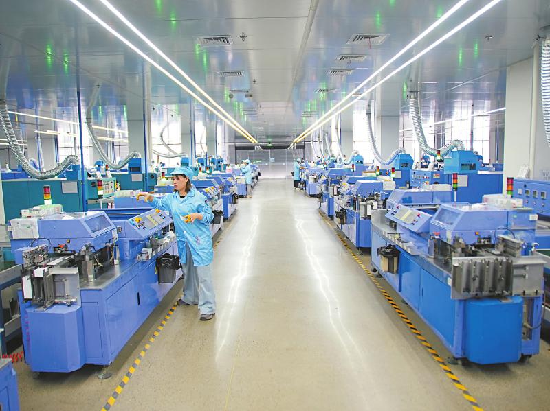 3月16日,溢辉电子科技有限公司电阻器生产车间内,工人加紧生产。 四川日报全媒体记者 韦维 摄