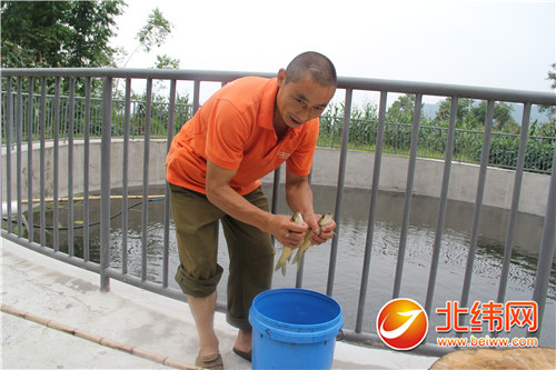 鱼塘内,鱼苗在水里欢快地跳跃着,激起了一层浓浓的水雾。在太阳村9组,扶贫对象刘炳刚的哥哥悉心地照料着满池的鱼苗,生怕有丝毫怠慢。