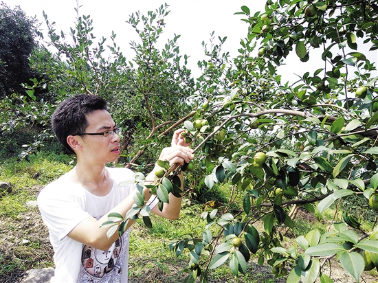 “上流村山地面积大,且大部分山地是酸性土壤,阳光、雨水充足,适合栽种油茶。通过近几年油茶基地的建设,村上不仅发展了产业,而且还引导贫困户在油茶基地打工,促进了贫困户增收。”罗脊屹说,目前虽然尚未收获,但挂在树上的油茶果明显比往年更大,据有经验的油茶种植户估计,改造后的油茶亩产将比往年增加100-150公斤。