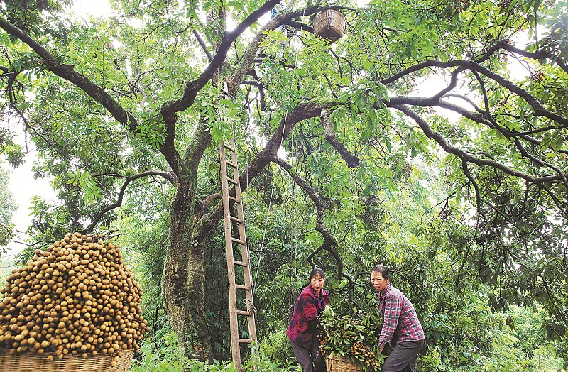 白露当日,泸州市江阳区黄舣镇马道子村村民在采摘桂圆。 泸州的晚熟桂圆进入收获期,村民忙着采摘桂圆供应中秋节日市场。预计今年全区桂圆产量将达1.7万吨,产值1.2亿元以上。 刘学懿 摄(视觉四川)