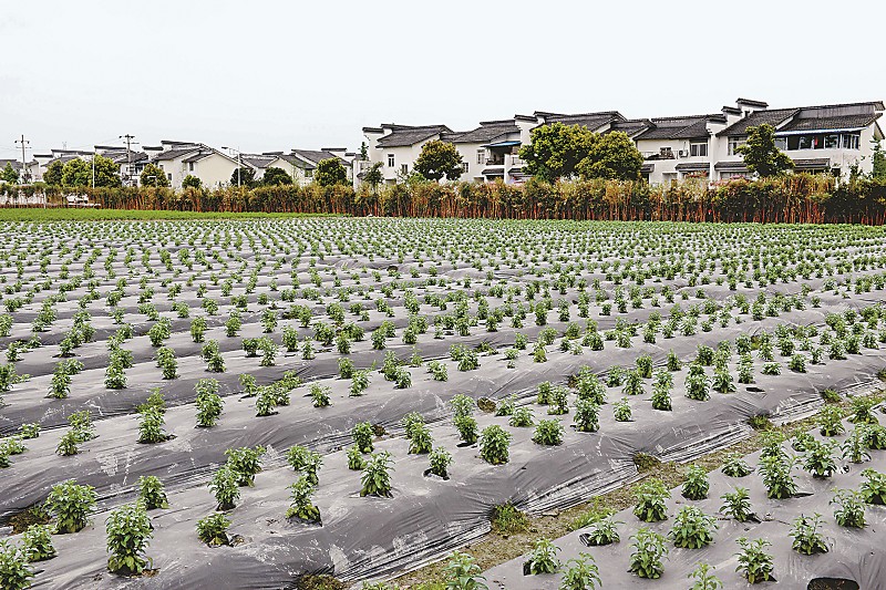 位于成都市郫县唐昌镇的战旗村,利用自身禀赋发展观光农业。图为环绕村民住房的薰衣草基地。 张长明 摄(视觉四川资料图片)