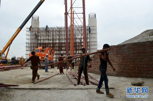 拉合尔轨道交通橙线项目是中巴经济走廊首个正式启动的交通基础设施项目,也是巴基斯坦首条轻轨线路。该项目全长约26公里,总投资16.26亿美元,由中国铁路总公司和中国北方工业公司联合承建,2015年4月20日签订总承包合同,合同工期27个月。项目建成后将极大地缓解拥有500多万人口的拉合尔市的交通压力。同时,该项目的建设将为当地创造上万个就业机会。图为巴基斯坦工人在拉合尔轨道交通橙线项目的建设工地上。新华网发