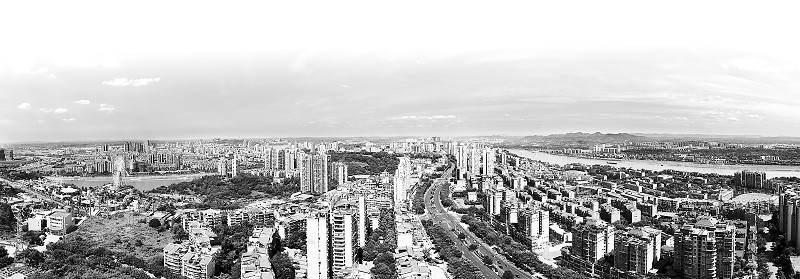 云岭之上看泸州市江阳区中心半岛。