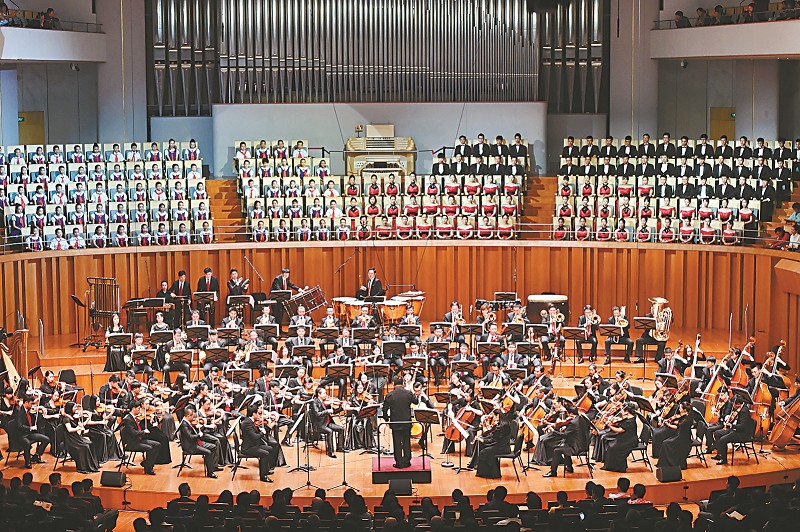 10月12日晚,纪念红军长征胜利80周年大型交响套曲《长征》音乐会在北京国家大剧院进行全国首演。 新华社记者 罗晓光 摄