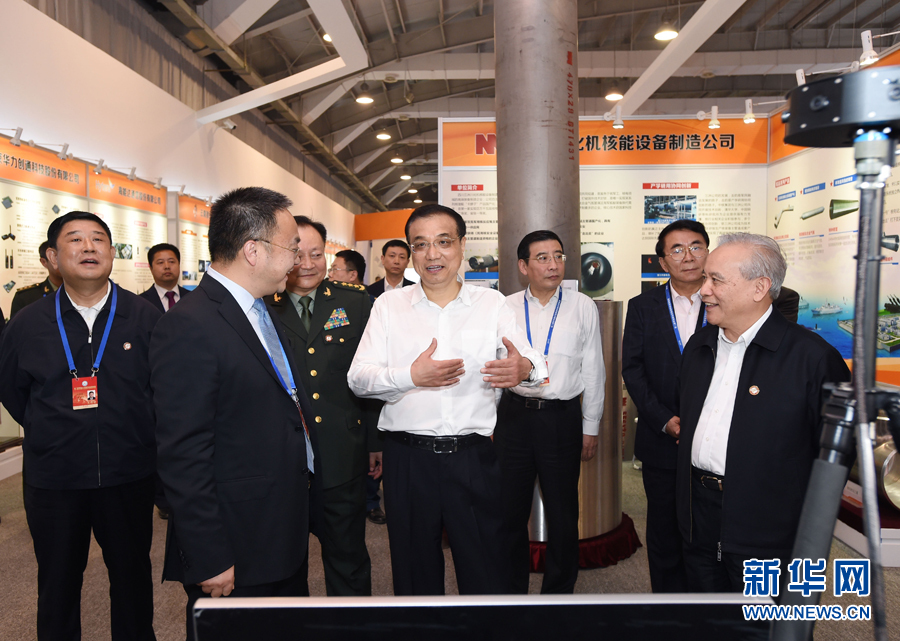10月19日,中共中央政治局常委、国务院总理李克强在北京参观第二届军民融合发展高技术成果展。 新华社记者 饶爱民 摄