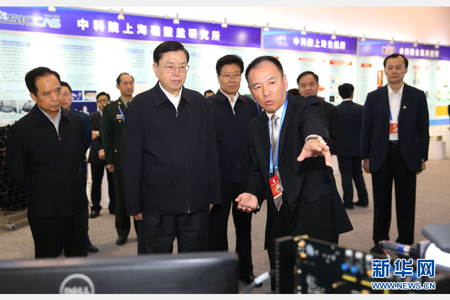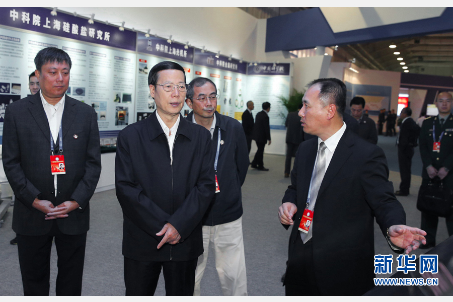 10月19日,中共中央政治局常委、全国人大常委会委员长张德江在北京参观第二届军民融合发展高技术成果展。 新华社记者 马占成 摄
