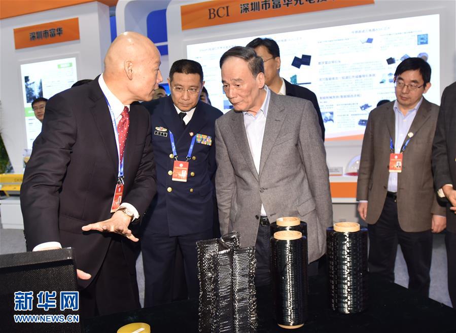 10月19日,中共中央政治局常委、中央纪委书记王岐山在北京参观第二届军民融合发展高技术成果展。 新华社记者 李涛 摄