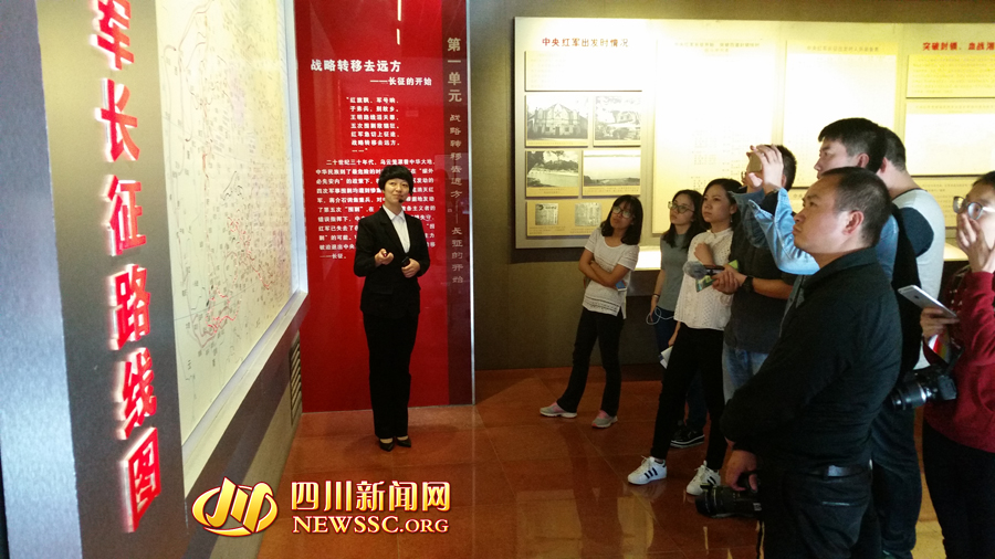 采访团在纪念馆内了解红军在会理的情况