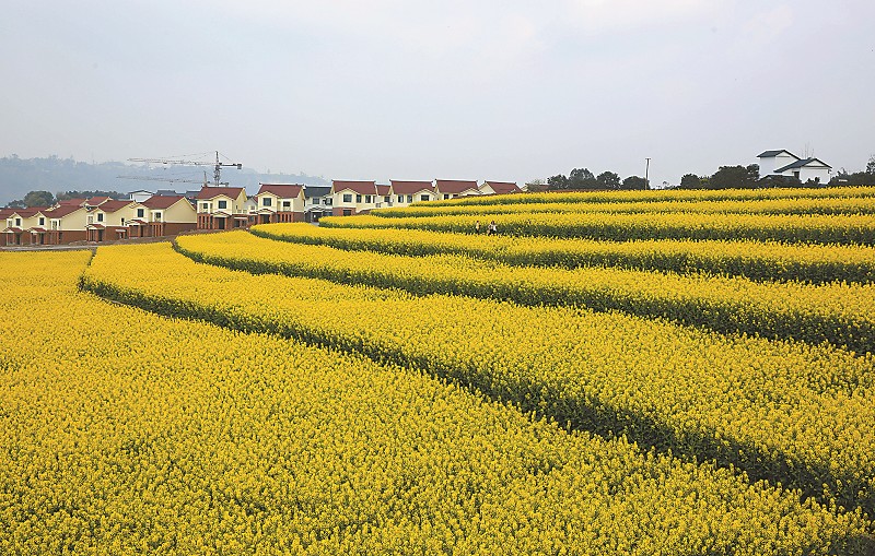 江阳区马道子中心村引进公司集中种植油菜成新景。