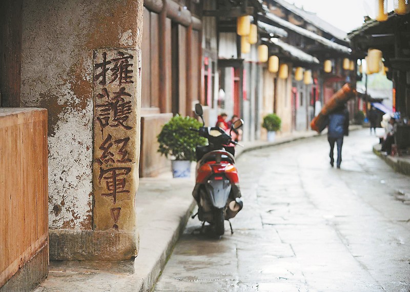 巴中市恩阳古镇街道上保存着不少红军石刻标语。本报记者肖雨杨摄