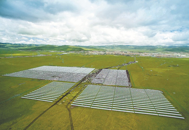 红原县建成的光伏电站,更好地把生态环保与现代畜牧结合起来。
