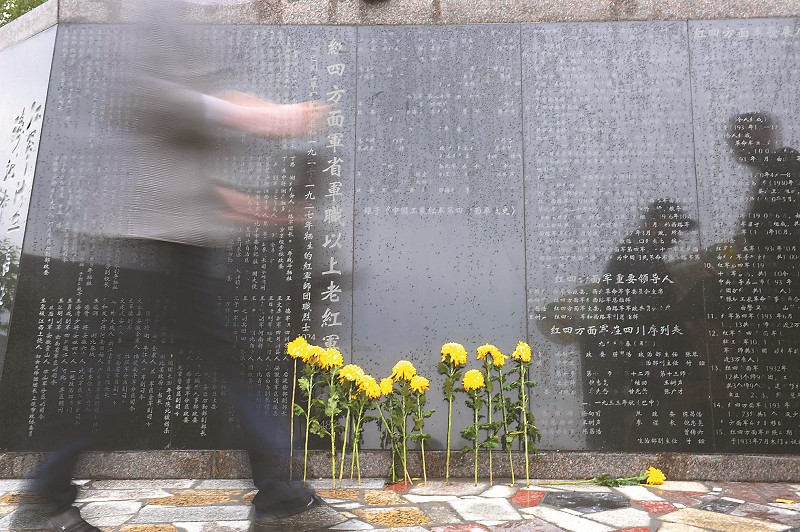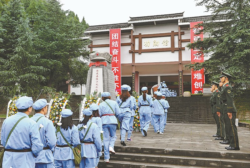 10月11日,市民来到川陕苏区红军将士英名纪念碑下缅怀先烈,迄今已有200多万人次游客来此参观。