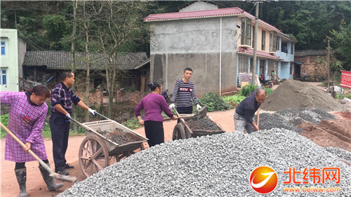 水泥砂石到位,村民们立刻甩开膀子干了起来,大伙儿干得热火朝天。