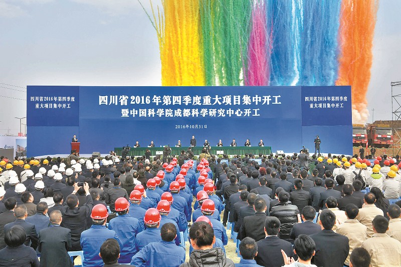 10月31日,四川省2016年第四季度重大项目集中开工暨中国科学院成都科学研究中心项目开工仪式举行。 本报记者 毛漫丁 摄