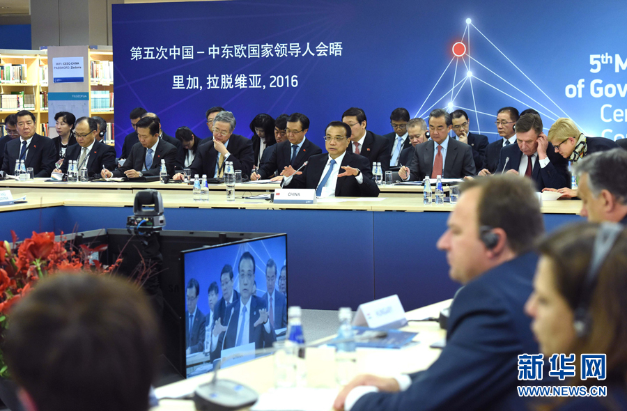 11月5日,国务院总理李克强在里加出席第五次中国-中东欧国家领导人会晤。 新华社记者 饶爱民 摄