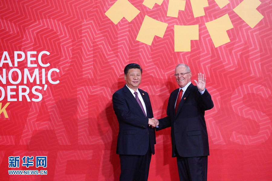 11月20日,亚太经合组织第二十四次领导人非正式会议在秘鲁利马举行。国家主席习近平出席并发表题为《面向未来开拓进取促进亚太发展繁荣》的重要讲话。这是会议开始前,习近平受到秘鲁总统库琴斯基的热情迎接。新华社记者庞兴雷摄
