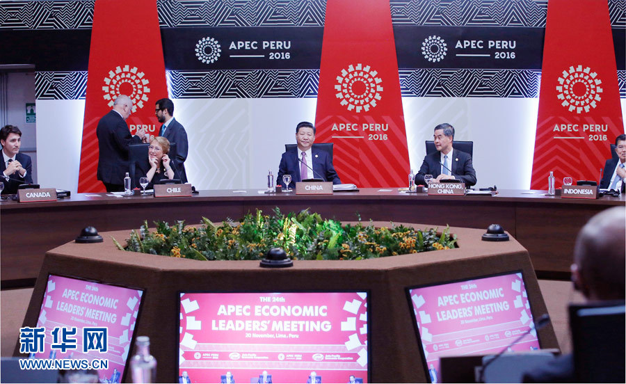 11月20日,亚太经合组织第二十四次领导人非正式会议在秘鲁利马举行。国家主席习近平出席并发表题为《面向未来开拓进取促进亚太发展繁荣》的重要讲话。新华社记者鞠鹏摄