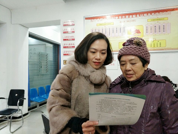 何小艳为社区老人讲解民政政策和办证手续。(社区供图)
