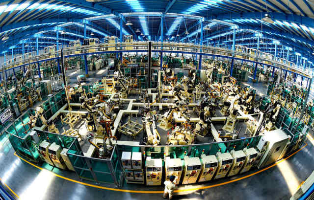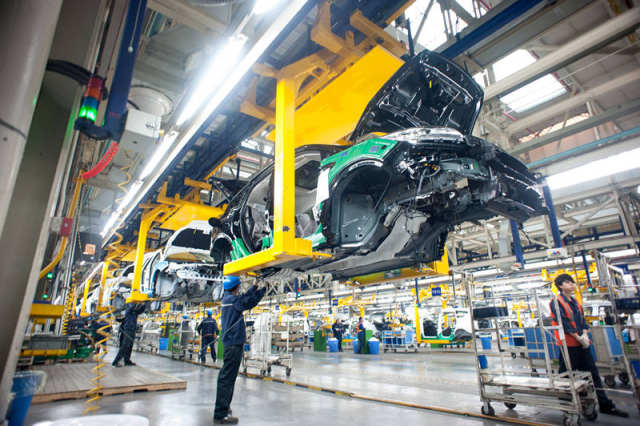 2014年10月21日,工人在重庆长安福特汽车现代化整车生产线上工作。新华社记者 刘潺 摄