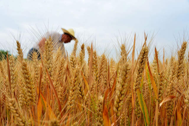2015年6月4日,山东省滕州市西岗镇农民在麦田里劳作。新华社记者 郭绪雷 摄