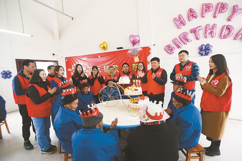 鲁鹏志愿者联盟成员为老人送去欢歌笑语。