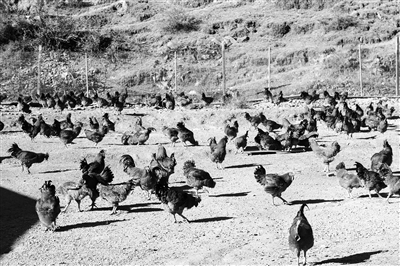 说起跑山鸡,这里还真有一段故事可讲。就在一年前,当四川省国防科工办驻湾地沟村第一书记蒲江涛踏着泥土碎石铺成的机耕道走进湾地沟村调研时,他最初的打算是通过种植蔬菜、养殖藏香猪和加工矿泉水来帮助村民脱贫。然而,在一番论证之后,却因周期过长、投入过高、没有比较优势等原因而被否决了。今年1月,在编制产业扶贫规划时,四川省畜科院驻湾地沟村技术员夏波意外地发现,雅江市场上所销售的肉鸡都是泸定等地的外地肉鸡,整个雅江还没有一家规模化肉鸡养殖基地,而湾地沟海拔较低、日照充足、林多地少、水质优良的自然条件,正是养殖林下土鸡的好去处。尽管养殖生态土鸡的想法渐渐浮出了水面,但美好的想法要变成现实那绝非易事。因为,在这个传统的村落,习惯于喂养猪、羊、牛的村民,对养鸡根本就没有一点兴趣。事在人为。今年3月,夏波专程登门拜访四川万物生农业科技开发有限责任公司,一番画龙点睛的推介,一番深入细致的考察,一番用心用情的洽谈,双方合作一拍即合。在公司与村合作社共同出资的同时,县政府、四川国防科工办扶贫资金也为此倾力帮扶,很快投资360万元的现代化养殖场在大山里拔地而起,随即首批2000只鸡苗也运入了养鸡场。如今,养鸡场存栏的跑山鸡已突破了3000只。企业负责人魏永忠表示,眼下,存栏的跑山鸡正在陆续出栏,销路和行情非常看好。今年全村村民就能获得至少16万元的保底分红。