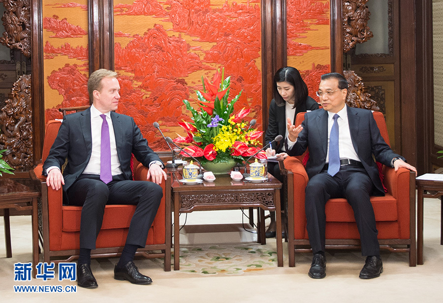 国务院总理李克强19日下午在中南海紫光阁会见来华进行正式访问的挪威外交大臣布伦德。