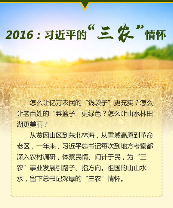这也正是指导今后“三农”工作的总方向。在五大发展理念指引下,今年我国农业农村发展继续保持稳中有进的良好态势,为经济社会发展大局提供了有力支撑。