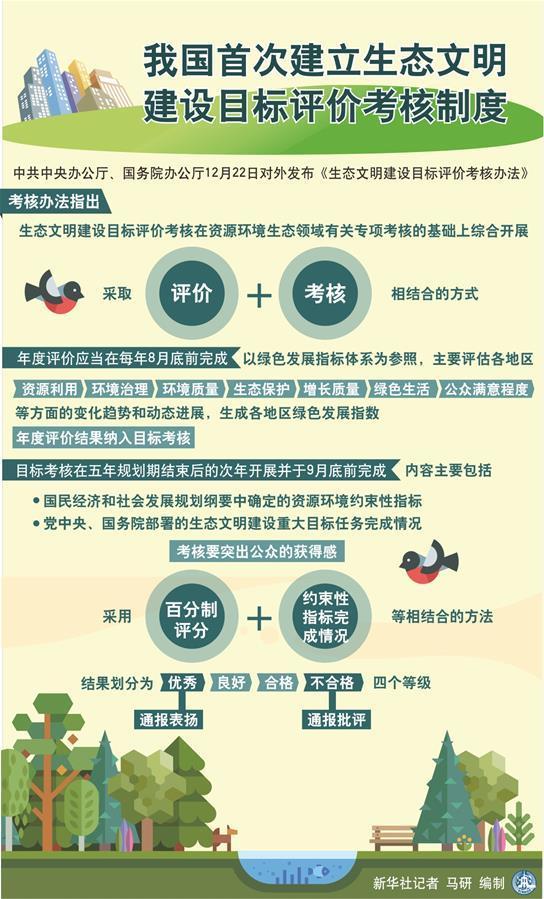 图表:我国首次建立生态文明建设目标评价考核制度 新华社记者 马研 编制