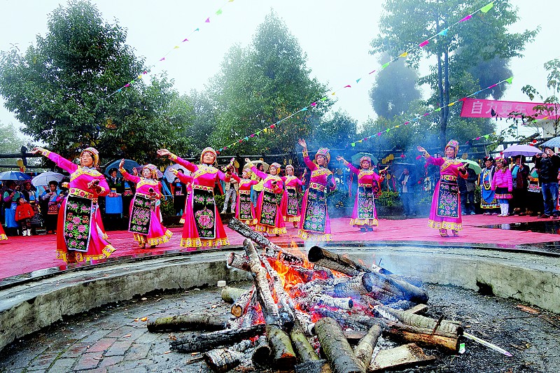 2015年,直台村村民载歌载舞庆祝羌历年。