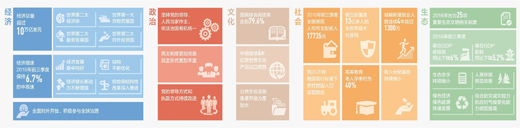 在经济建设方面,中国经济发展进入新常态,动力转换、结构优化,与世界的互动性显著增强。中国已经成为名副其实的经济大国、工业大国、贸易大国、科技大国,正在努力迈向更高发展阶段,迈向经济强国、工业强国、贸易强国、创新强国。